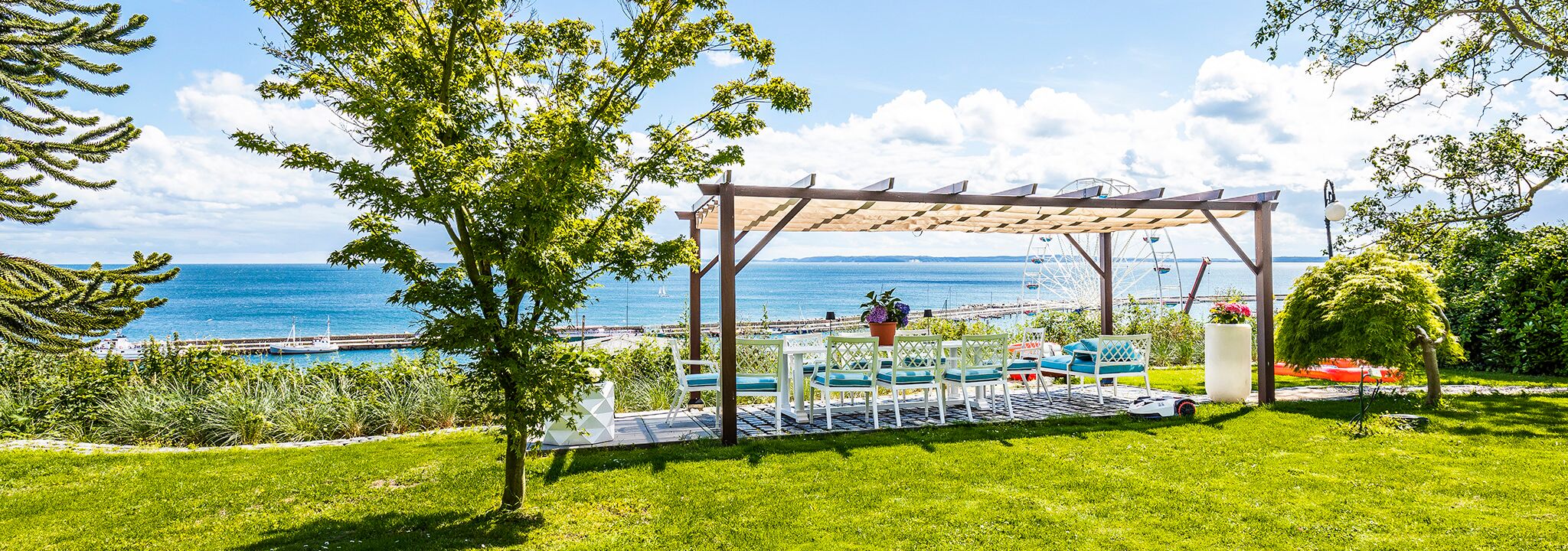 Eine Jugendstilvilla aus dem Jahr 1900- die erst 1997 und dann 2018 sehr aufwendig und liebevoll restauriert und eingerichtet wurde. Genießen Sie das unvergängliche Ambiente und einen herrlichen Blick über den Hafen auf die Ostsee. Eine Oase der Ruhe bietet der großzügig gestalten Garten mit wunderschönen angelegten Rosenrabatten und Rasenflächen. Er lädt zum Entspannen und träumen ein. Schon allein die Vorstellung, in einem bequemen Liegestuhl die Sonne zu genießen und dem Rauschen des Meeres zu lauschen, weckt sicherlich auch in Ihnen die Urlaubgefühle. Hier wird Ihr Aufenthalt zu einem unvergesslichen Erlebnis.